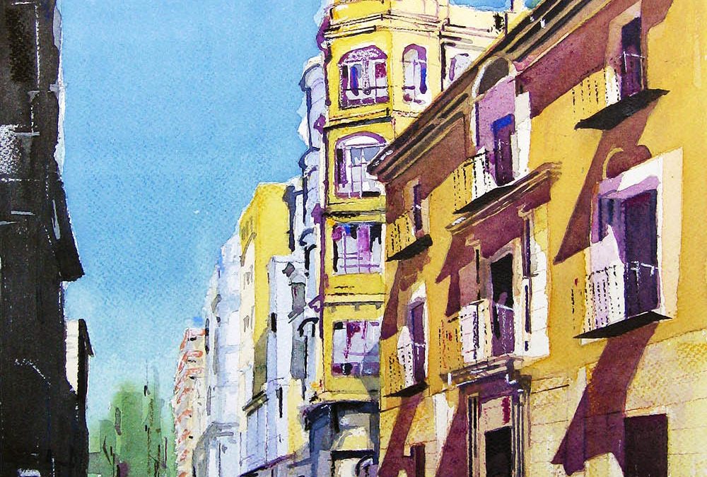 Colores primarios saturados y fuertes contrastes luminosos representan la principal calle palentina.