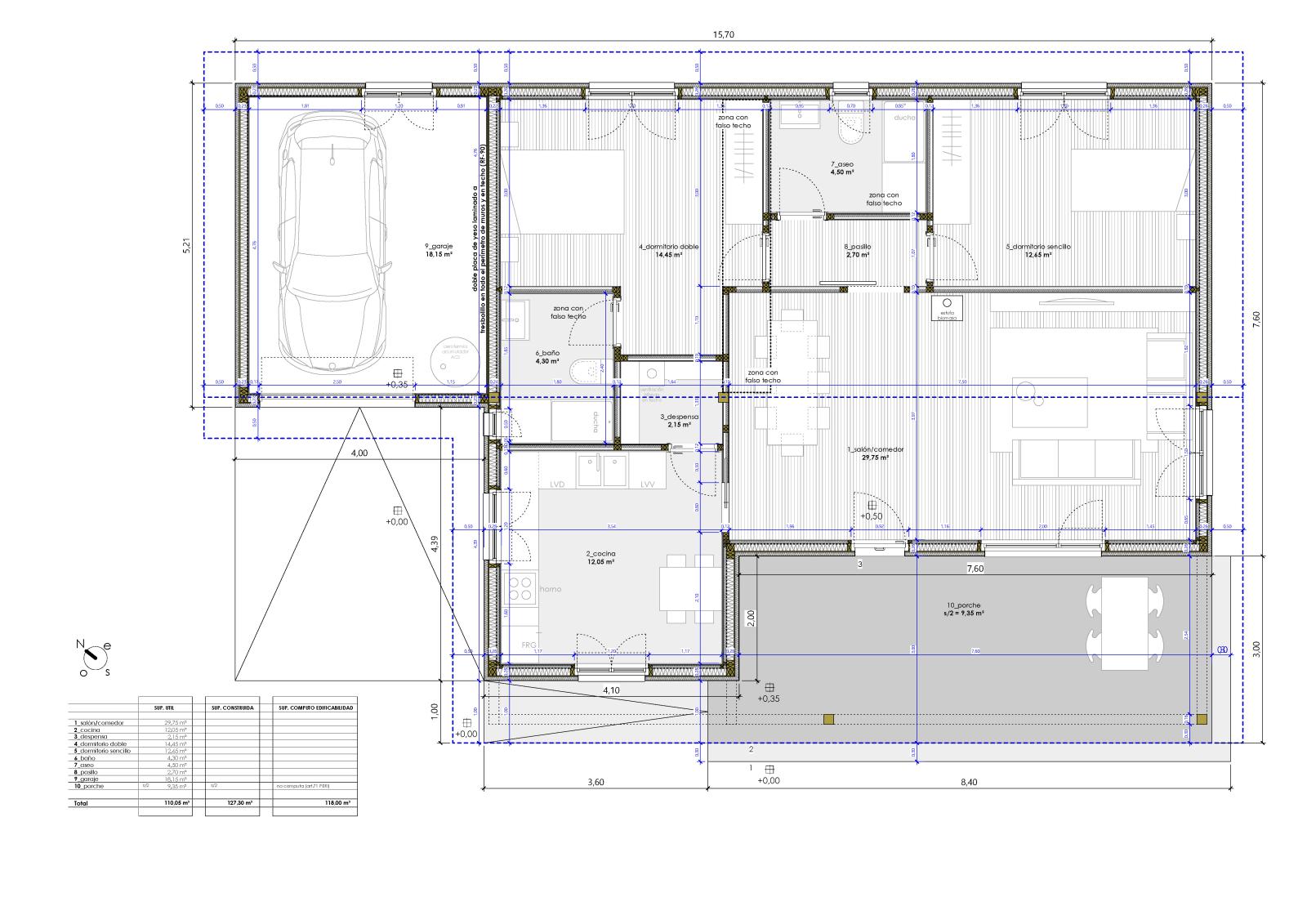 El programa del inmueble se compone de salón-comedor, cocina independiente con despensa, baño suite en el dormitorio doble, aseo de cortesía, dos dormitorios (uno doble y uno sencillo), un garaje y un amplio porche cubierto de acceso.