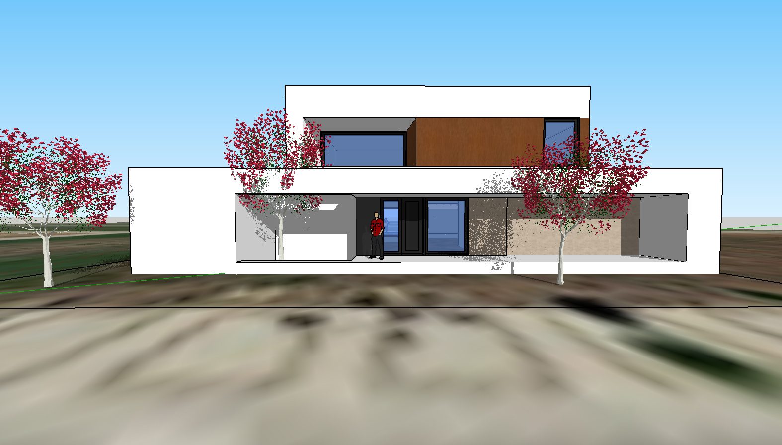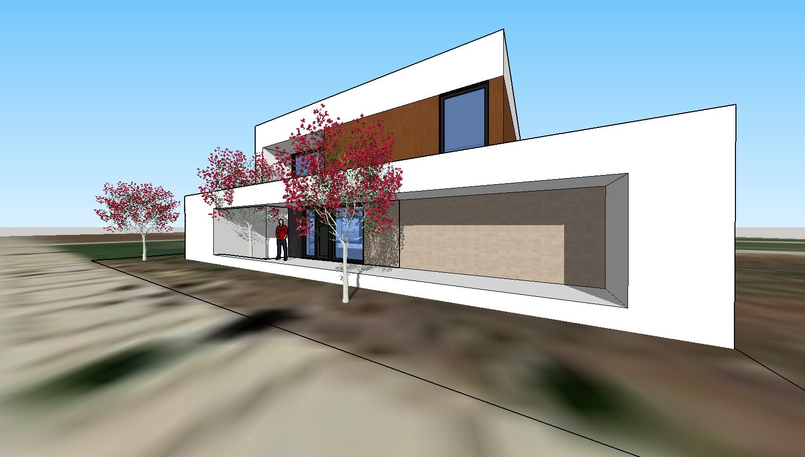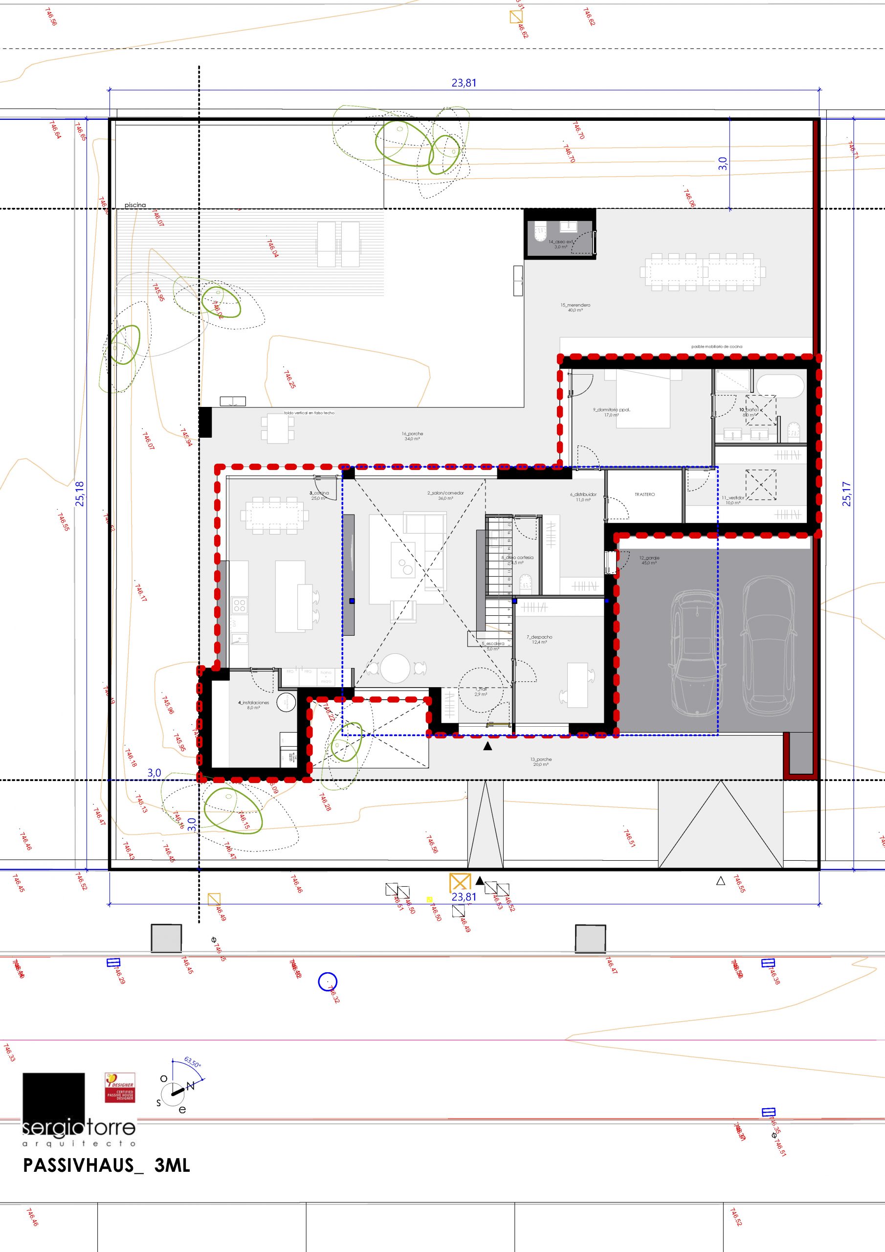 La vivienda está ubicada en una zona de nuevo crecimiento y se plantea como un edificio con el máximo confort interior, una óptima salubridad y un consumo energético casi nulo bajo el estándar passivhaus plus certificado.