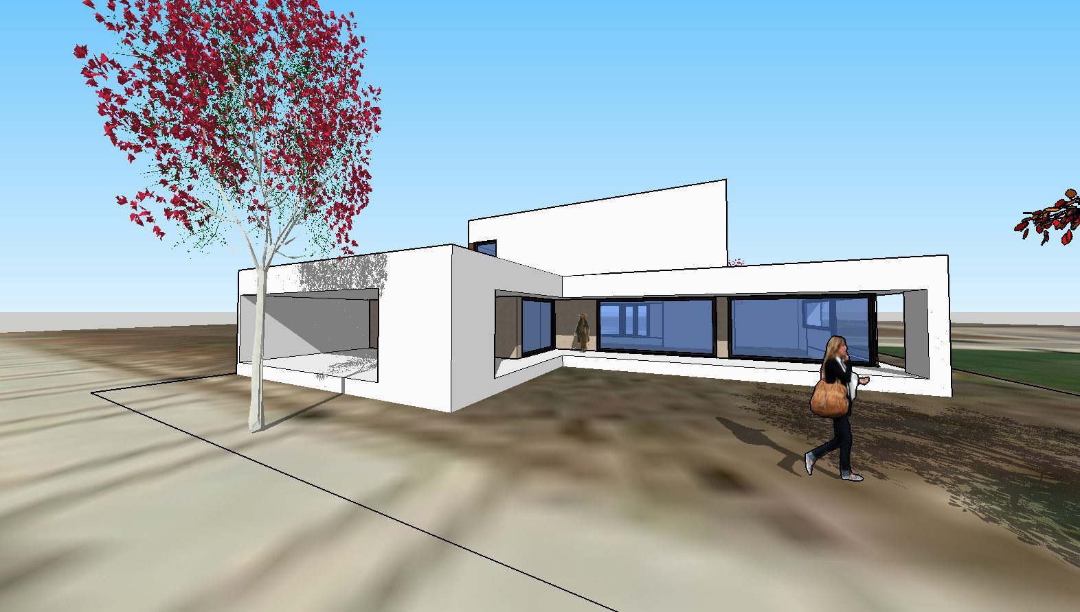 Cerrada al espacio público y abierta al máximo a la intimidad privada interior, la vivienda pasiva vuelca sus fachadas de manera coherente y sin ornamentos. Diversos vacíos espaciales generan entre sí una volumetría pura y funcional en forma de L, acondicionada al entorno, a sus vistas y orientaciones.