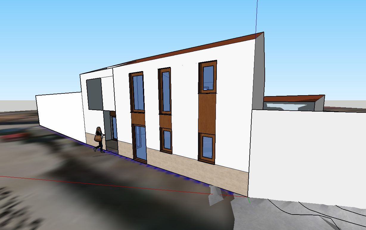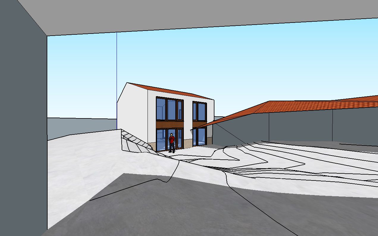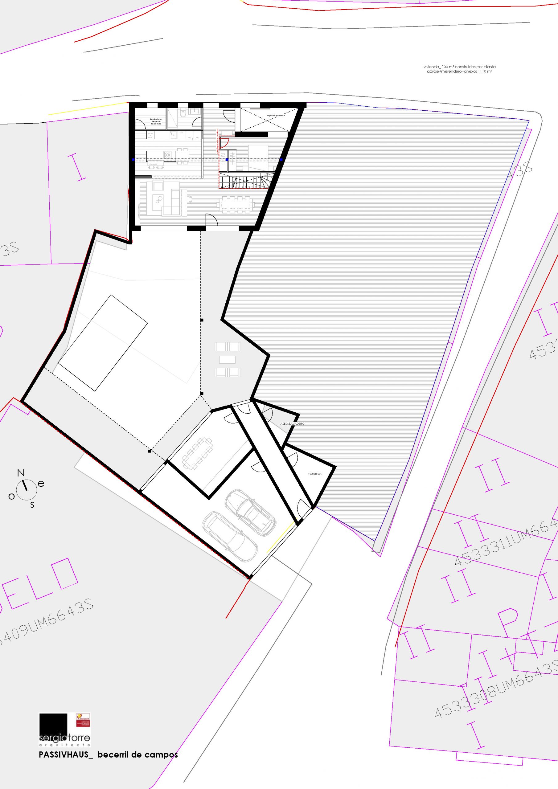 Se ha prestado especial atención a su disposición dentro de la parcela y a su relación directa con el entorno próximo. Así, su esquema en forma lineal genera un frente estrecho a la calle principal a la que se asoma de manera muy contenida y funcional, mientras el desarrollo se produce hacia el espacio privado de la parcela al sur.