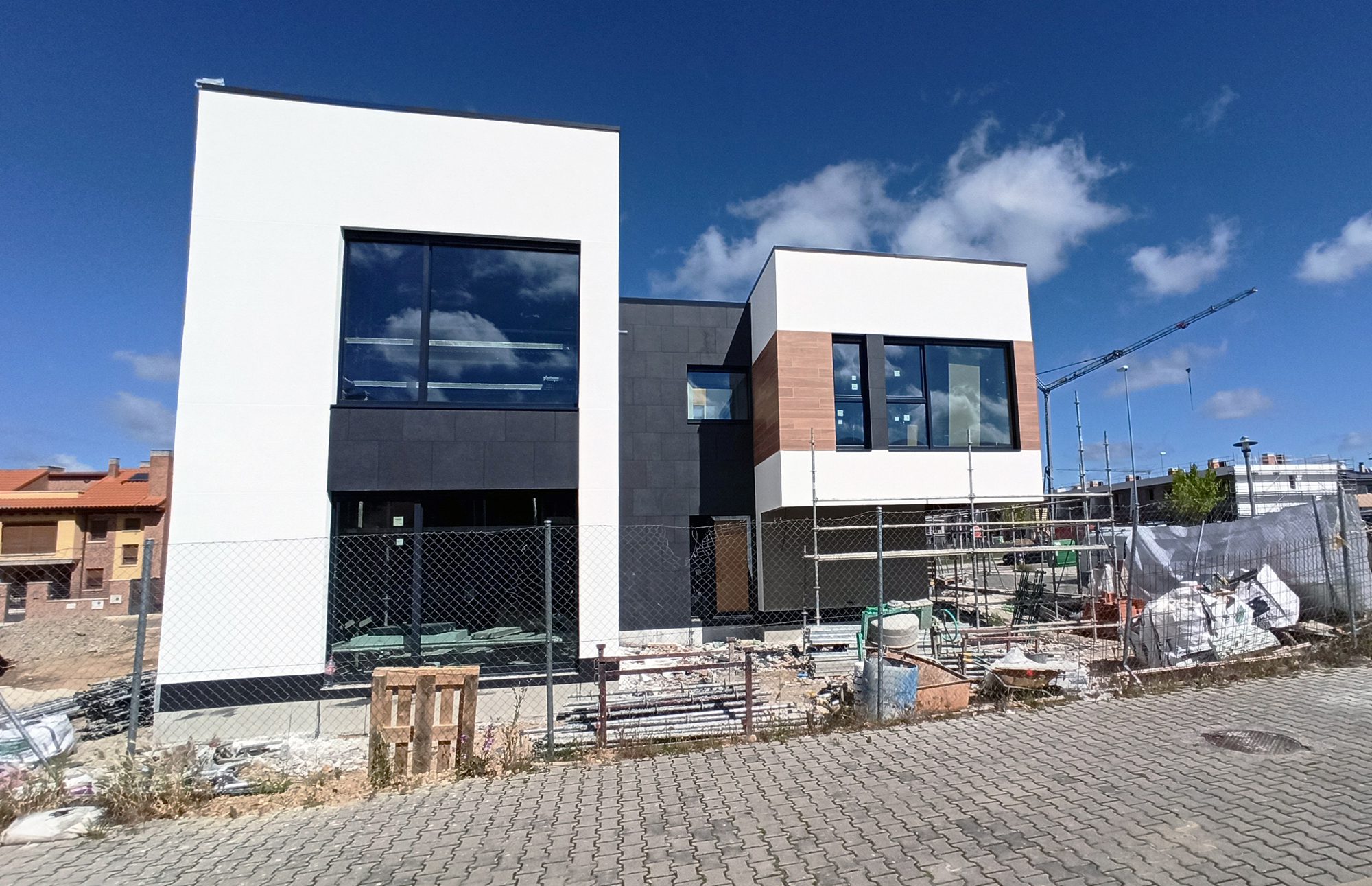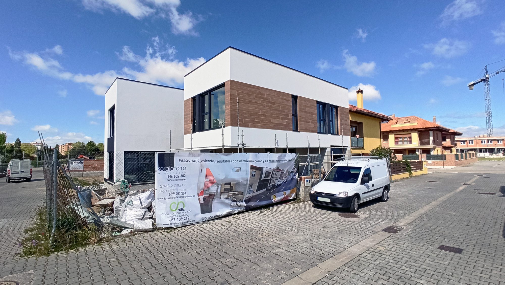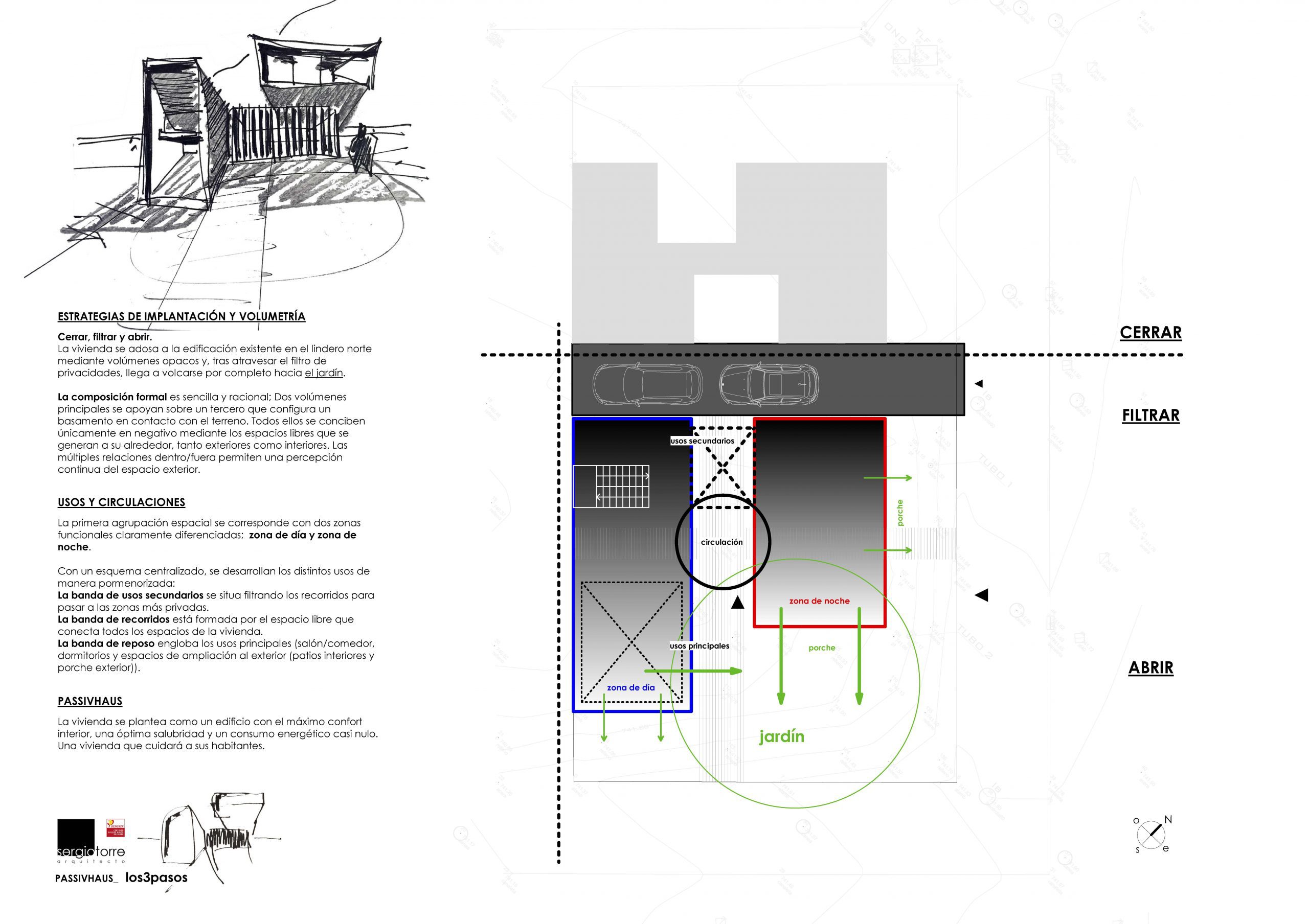 La vivienda ubicada en una zona de nuevo crecimiento con viviendas de tipología similar, se plantea como un edificio con el máximo confort interior, una óptima salubridad y un consumo energético casi nulo bajo el estándar passivhaus plus certificado.