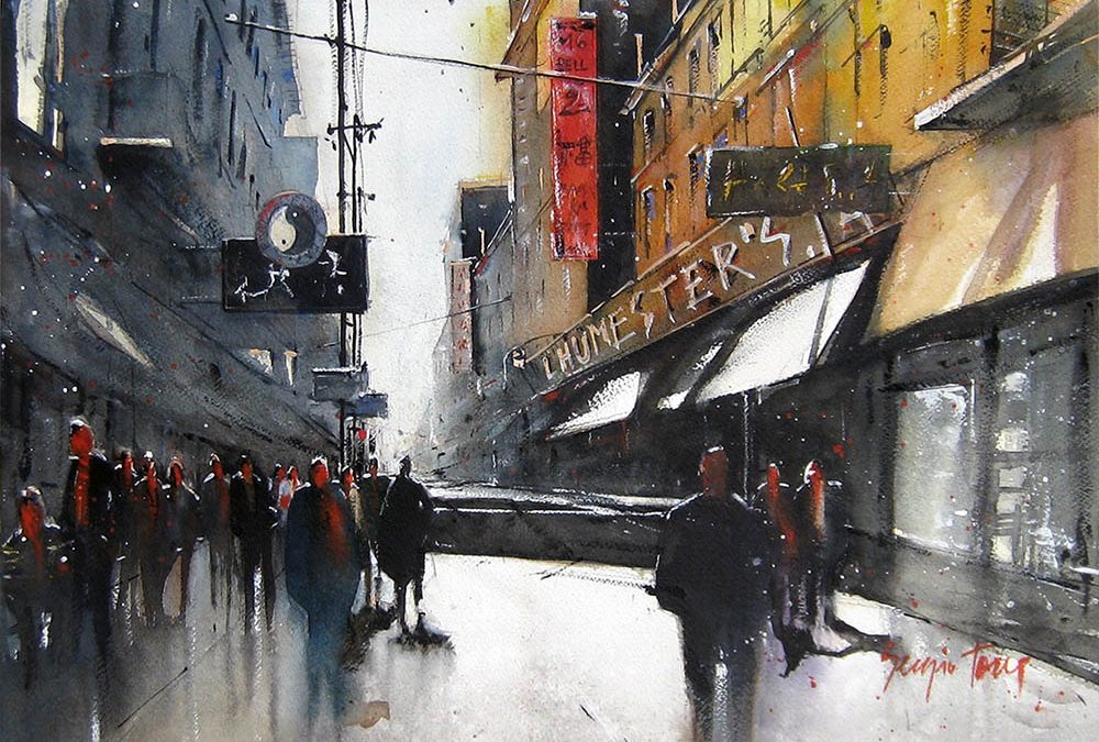 Ajetreada calle situada en Manhattan, propia del barrio chino. La atmósfera se recrea mediante una perspectiva muy marcada, unos tonos terrosos y un fuerte contraste luminoso.
