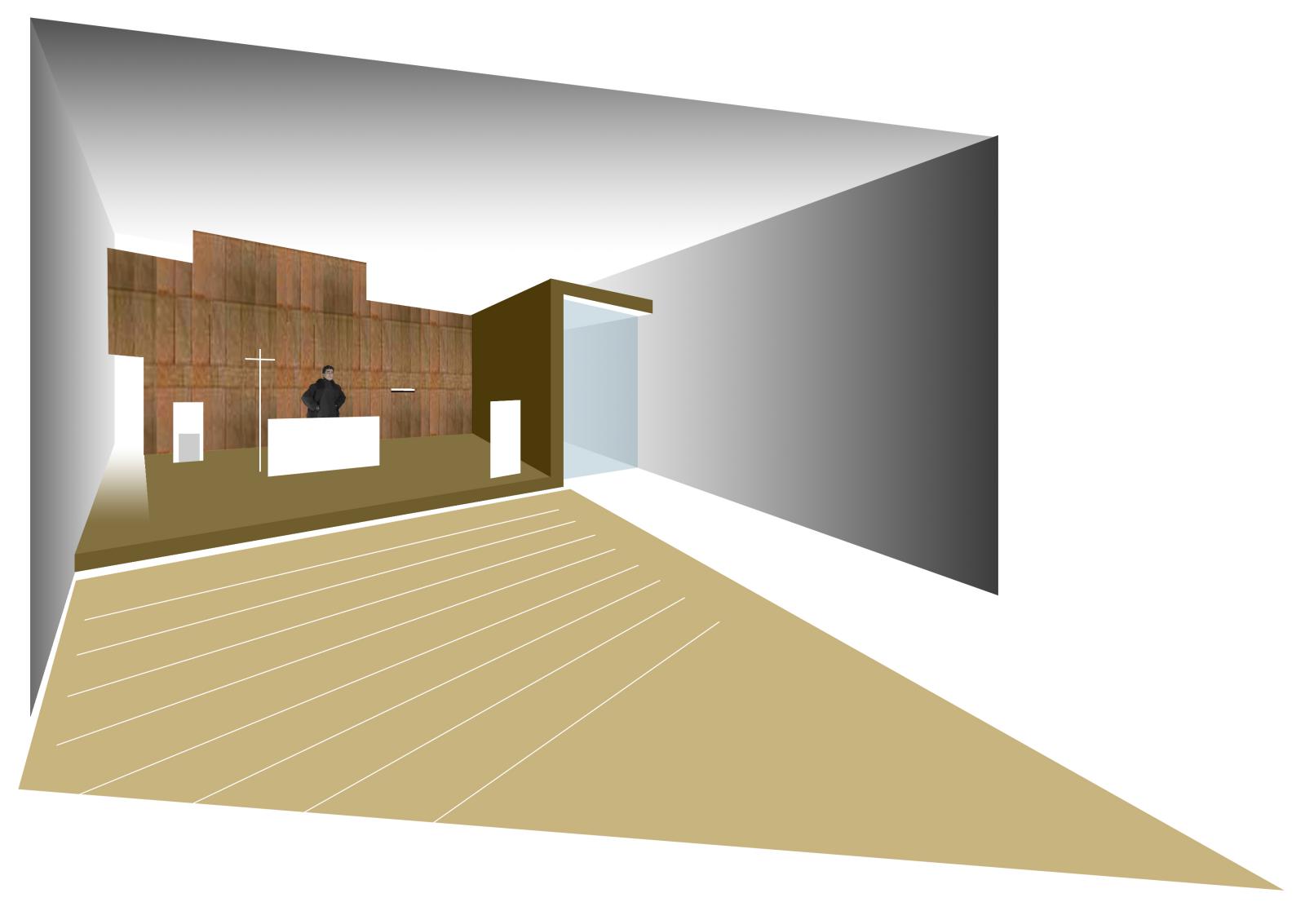 El conjunto da respuesta a las necesidades de la diócesis de poder disponer de un recinto para el culto en época invernal junto con sus salas de gestión y a su vez distribuir una vivienda para el párroco y sus ayudantes con acceso privado e independiente.