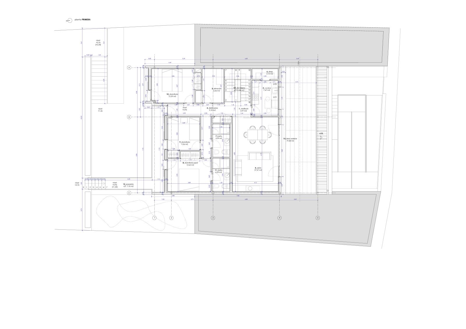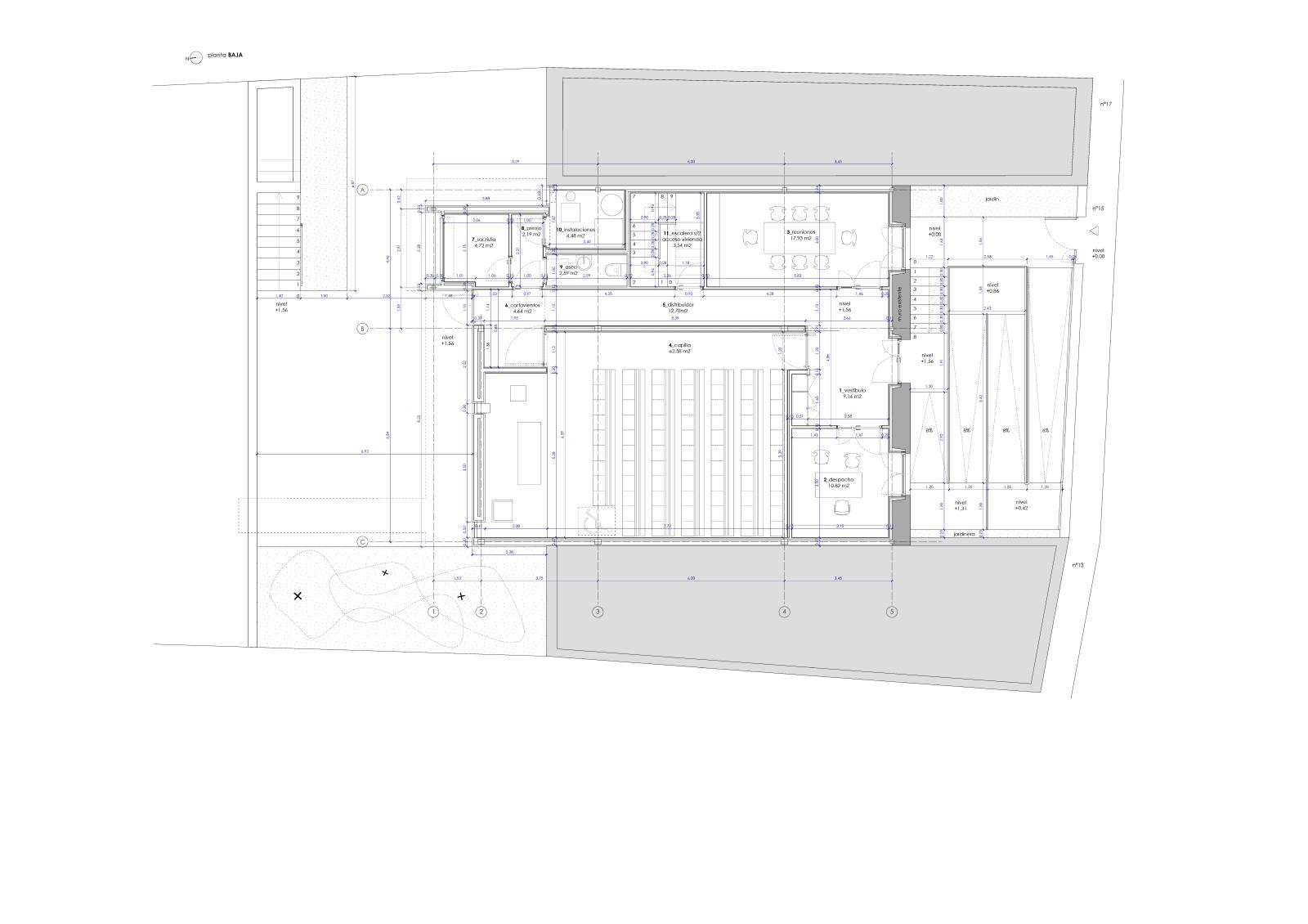 Así, el programa se desarrolla de la siguiente forma: En la planta baja se dispone un hall de acceso, despacho, sala de reuniones, capilla, sacristía, aseo de cortesía y sala de instalaciones. La escalera da acceso a la planta superior donde se distribuyen tres dormitorios dobles, salón-comedor, trastero, cocina con despensa y dos baños completos.