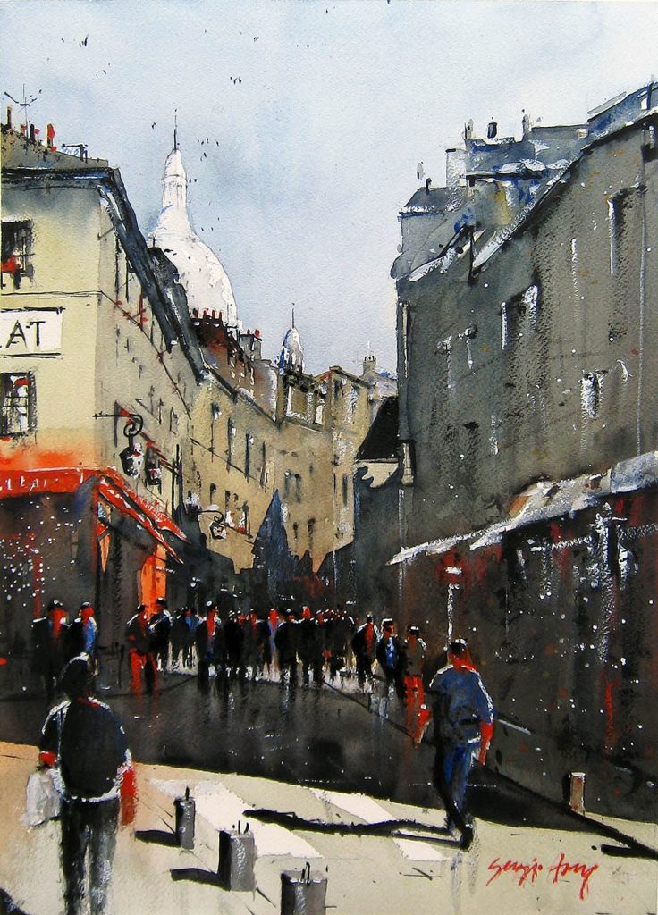 Subida a Montmartre, cuna de los pintores impresionistas, con la basílica del Sagrado Corazón al fondo.