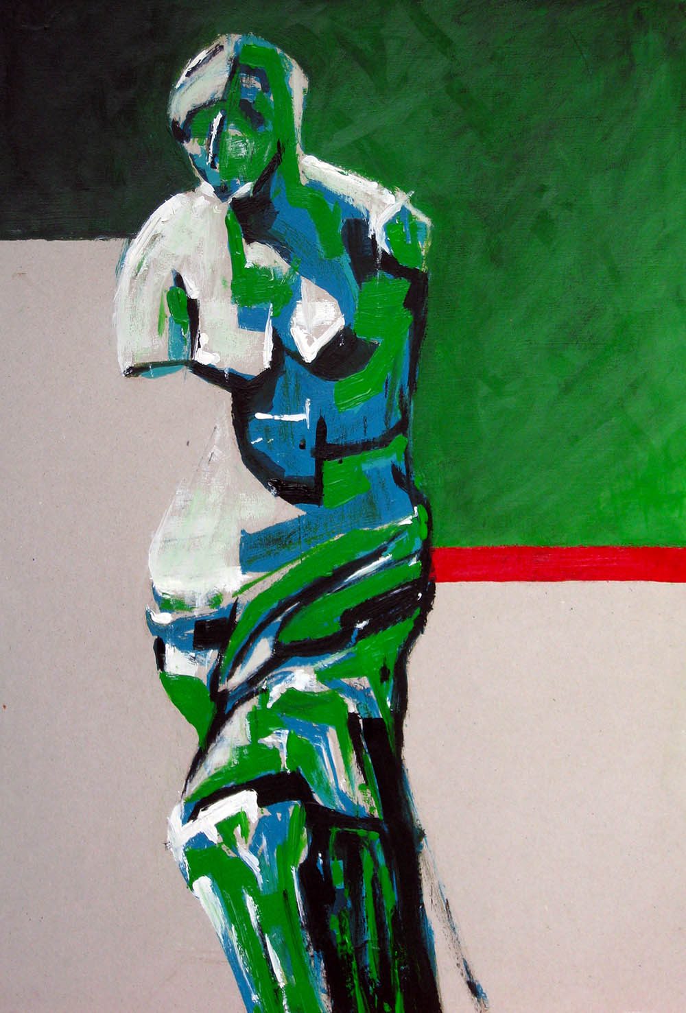 Estudio corporal de la obra griega. Colores subjetivos y relieves que ayudan a realzar las formas.