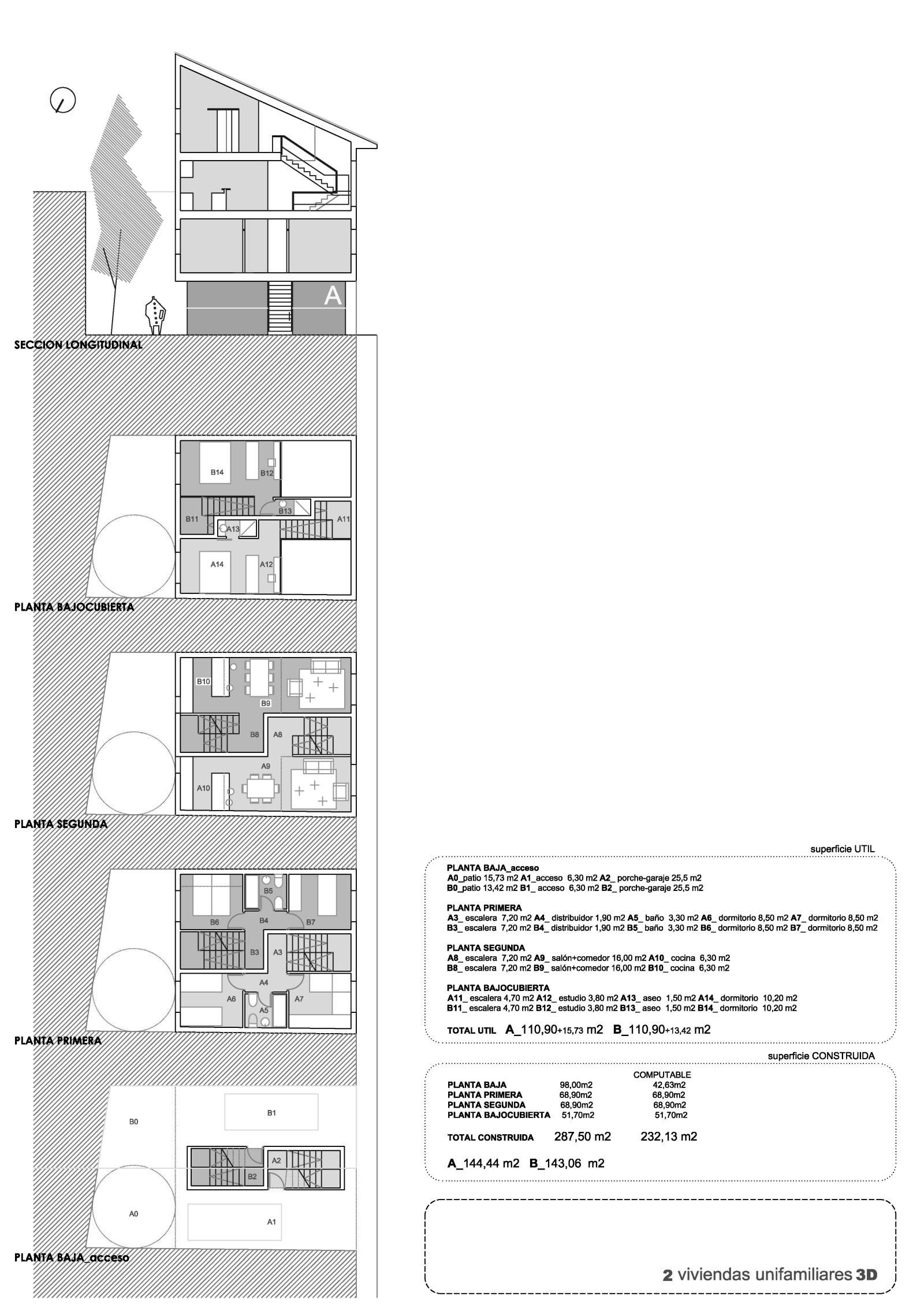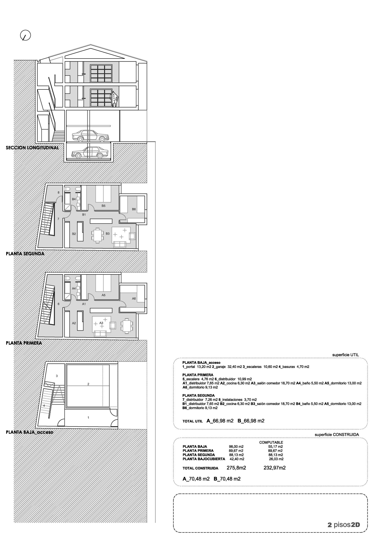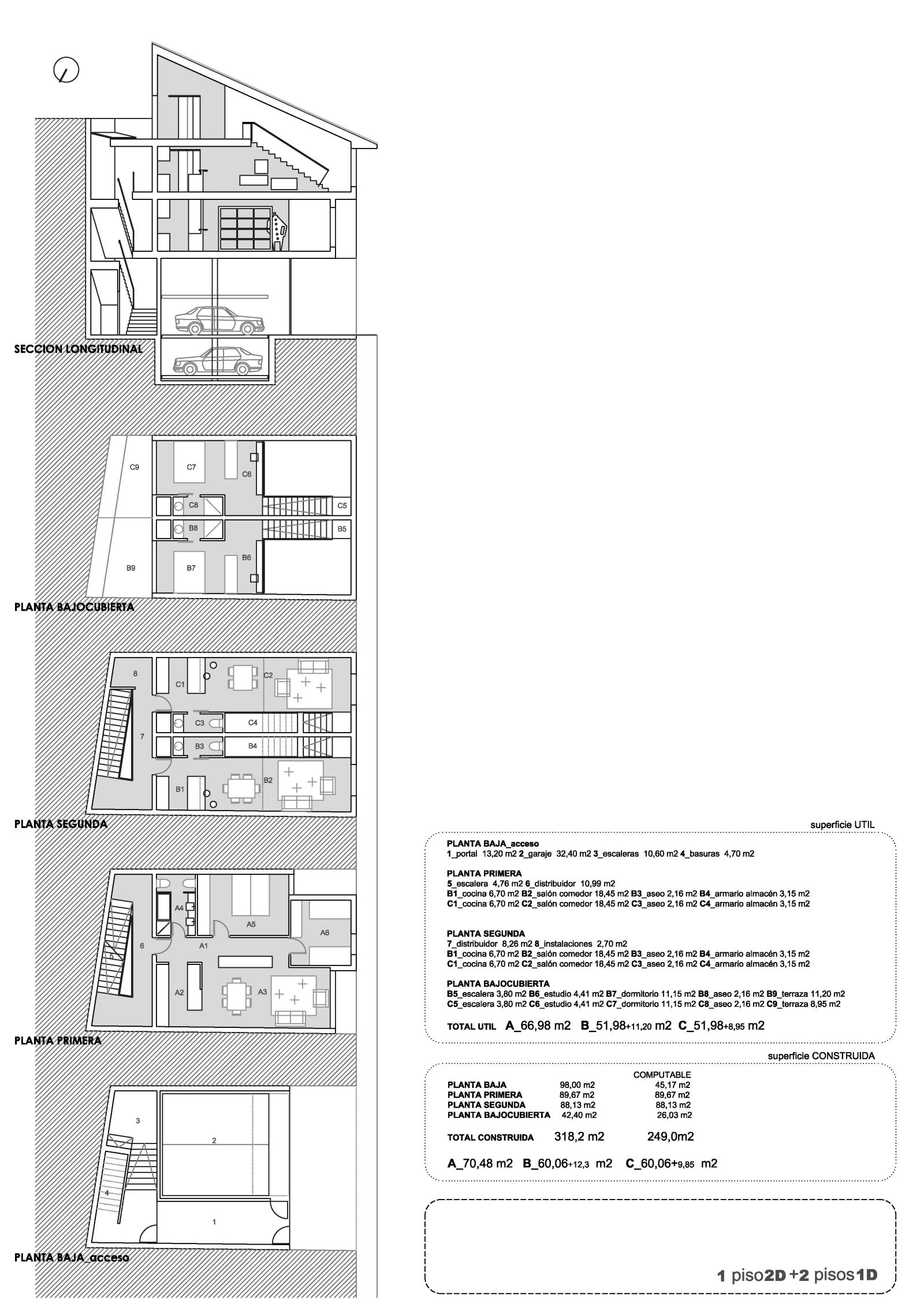 Edificio de vivienda colectiva con tres plantas + baja. Se distribuyen viviendas de diferentes tipologías.