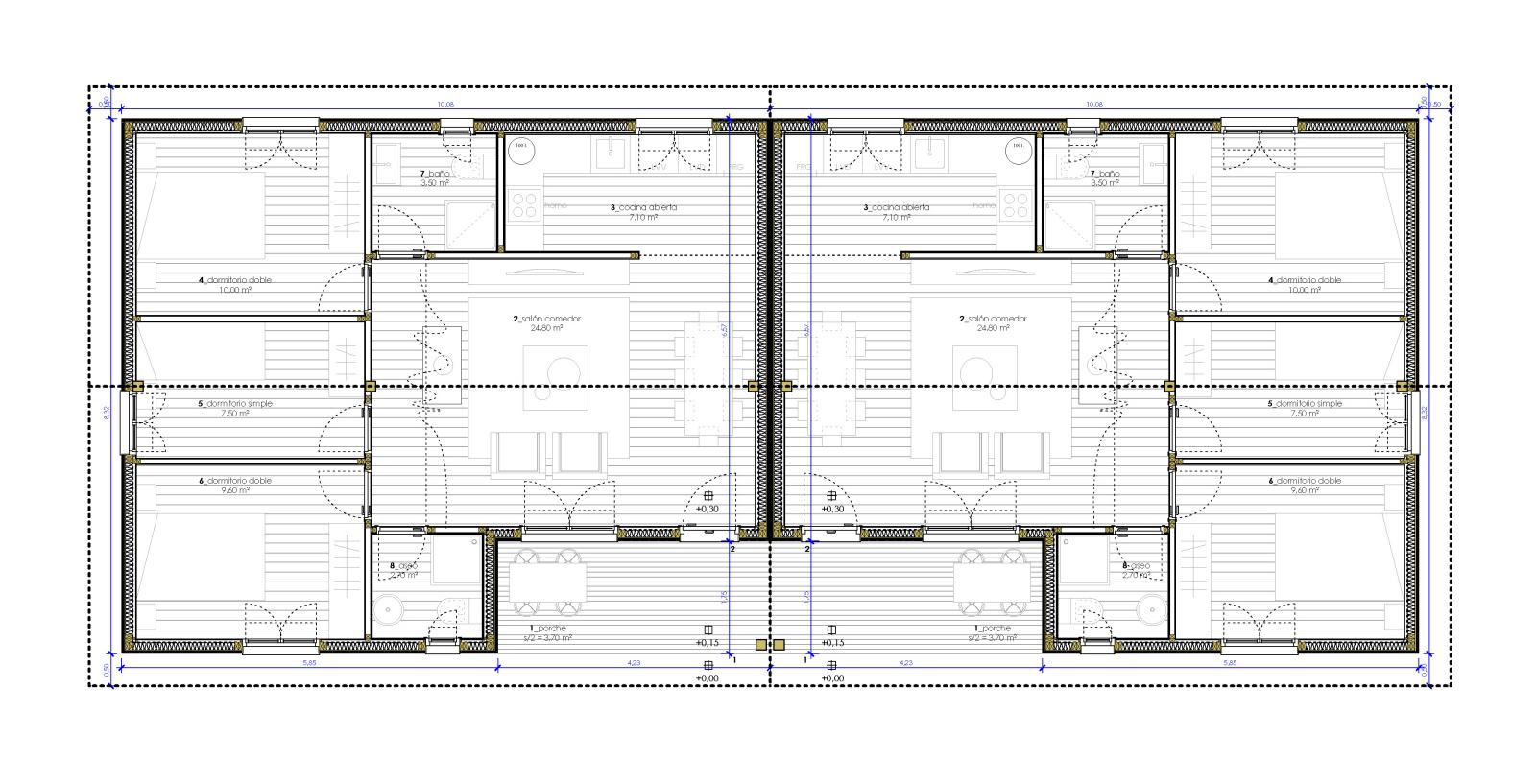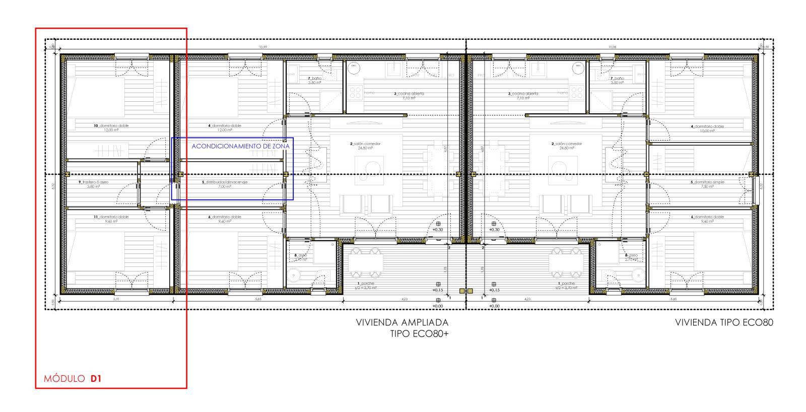 Promoción de viviendas unifamiliares pareadas bajo el modelo ECO80 revisado para su ampliación mediante módulos D1.