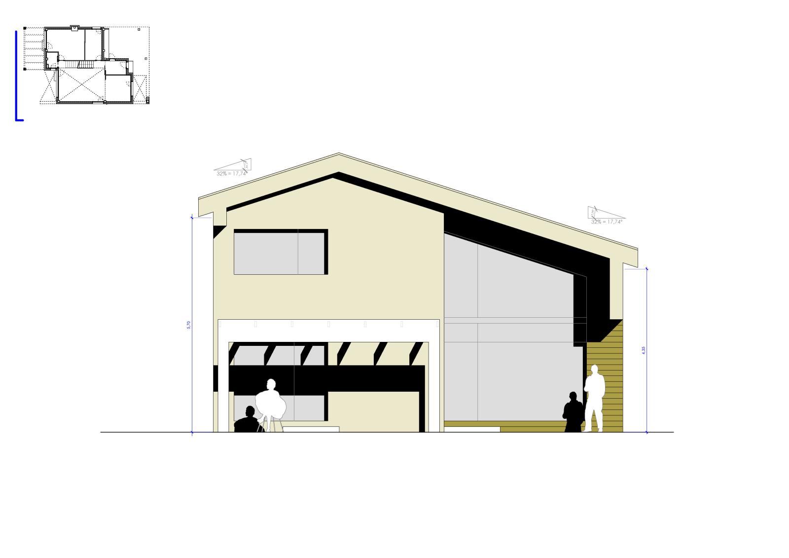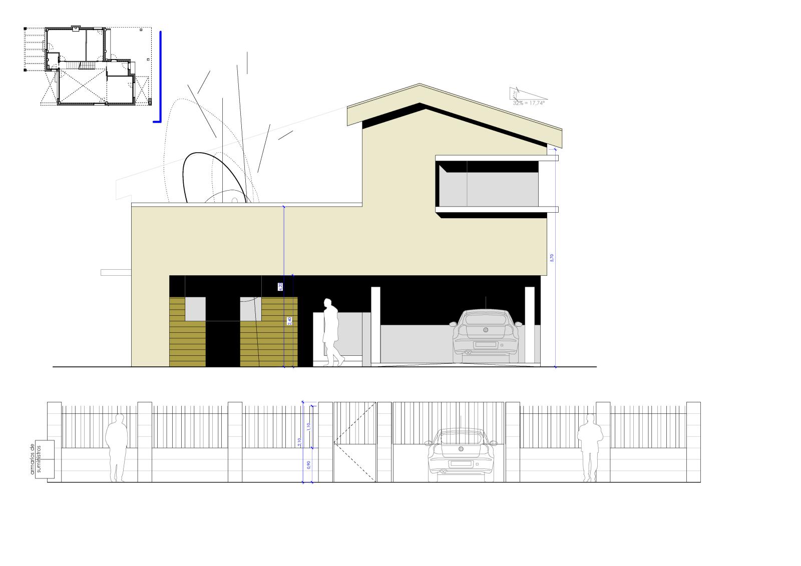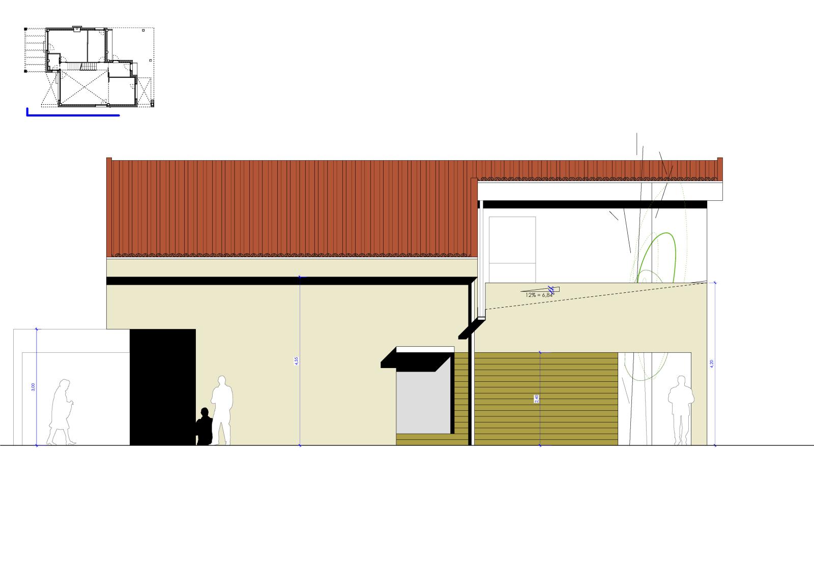 El programa de la vivienda se desarrolla para una pareja joven y funcional. Buscan espacios dinámicos y luminosos, sobre todo en las zonas de uso de día donde los espacios se abren completamente al jardín privado. Se gana en privacidad conforme nos vamos elevando. En la zona de acceso de la planta baja se disponen un garaje abierto y cubierto con 2 plazas de aparcamiento y un hall con función de almacenaje que da paso al espacio diáfano del salón/cocina/comedor. La planta baja se completa con un merendero abierto al jardín, un despacho y un aseo de cortesía. En la planta primera se distribuyen los espacios más privados como son el dormitorio sencillo y el dormitorio principal con vestidor. Una sala de juegos que vuelca al salón y un baño común completan el programa funcional.