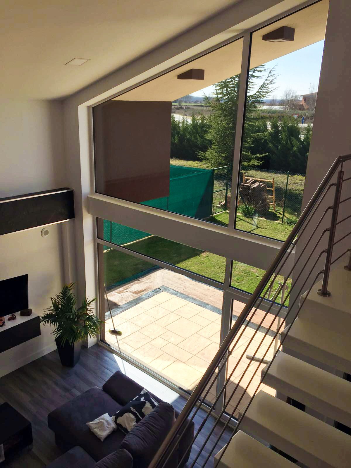 estanqueidad. Se ha colocado un sistema de ventilación de doble flujo con recuperación de calor de hasta el 95% y refrescamiento nocturno por bypass. A esta red de ventilación se le ha añadido una batería de agua caliente para que calefacte el aire impulsado a las distintas salas. Esta batería se conecta al sistema de aerotermia instalado. La aerotermia se compone de un depósito de ACS con una bomba de calor incorporada de alto rendimiento que extrae energía del propio aire exterior.