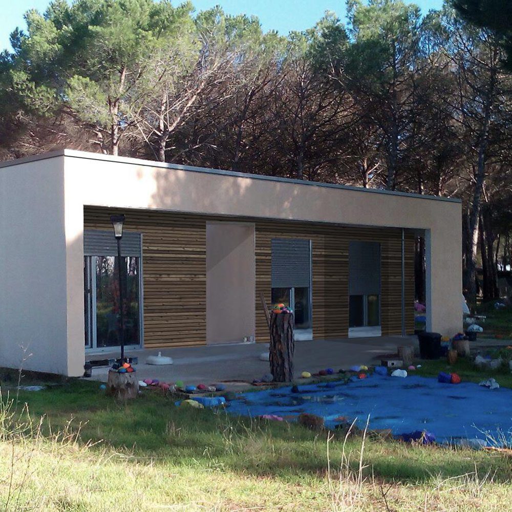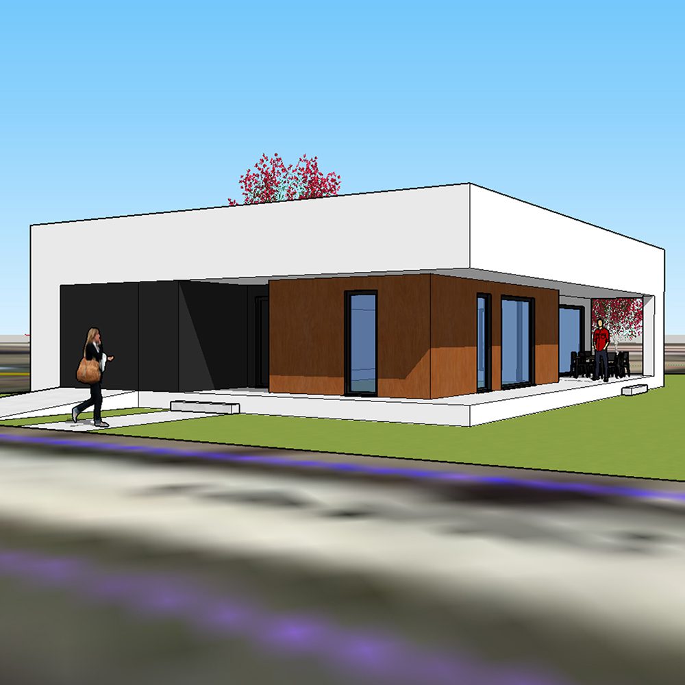 Vivienda unifamiliar aislada situada en un pequeño núcleo de población rural. Se desarrolla en una sola planta y se compone de salón-comedor, cocina abierta, dos dormitorios […]Casa modelo ECO80
