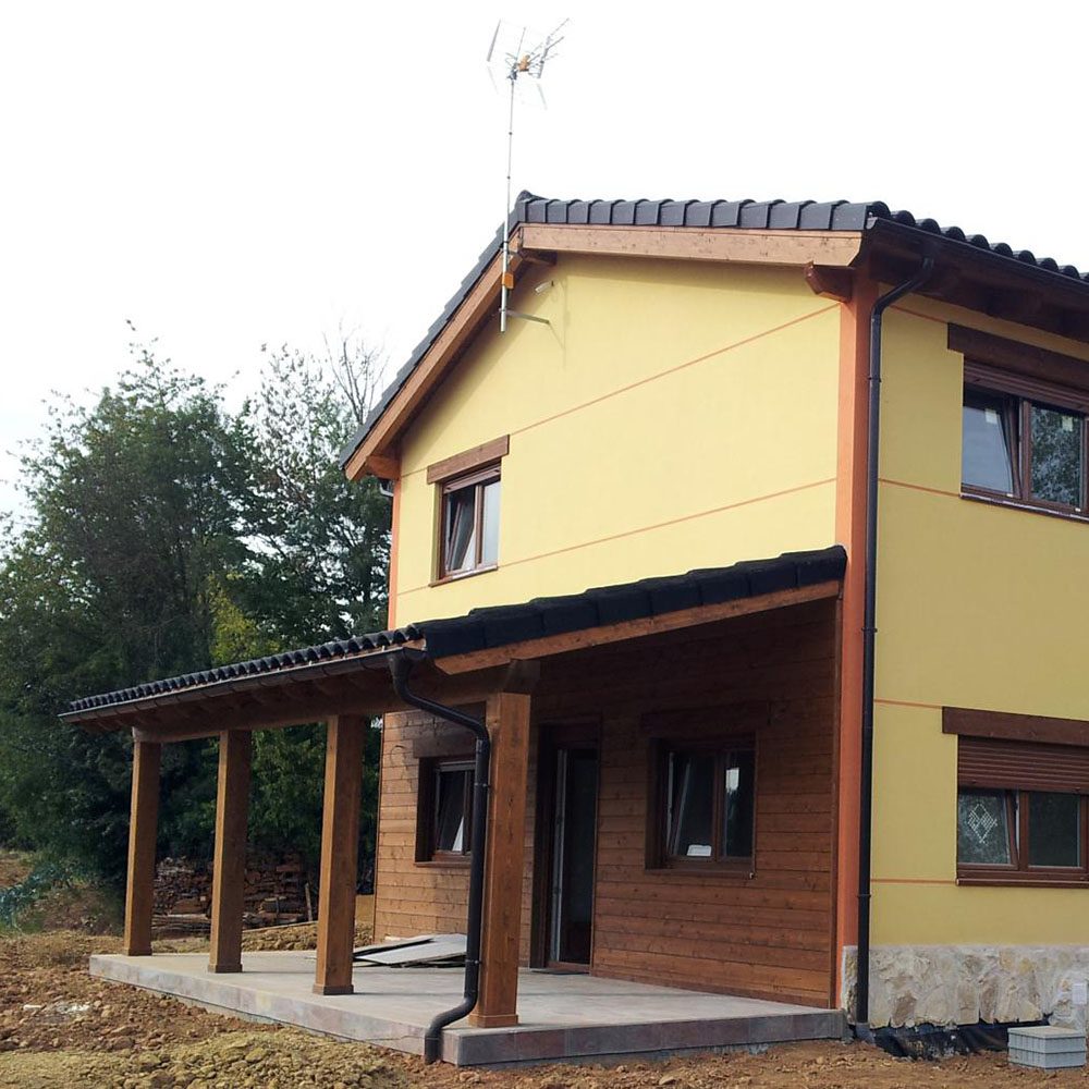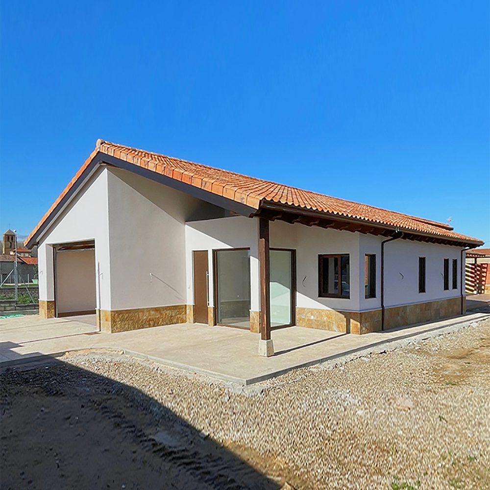 Vivienda unifamiliar aislada de estética rústica cuya distribución consta de un amplio salón/comedor, cocina completa, distribuidor, tres dormitorios dobles, baño y aseo. Además dispone de un […]Casa modelo ECO100