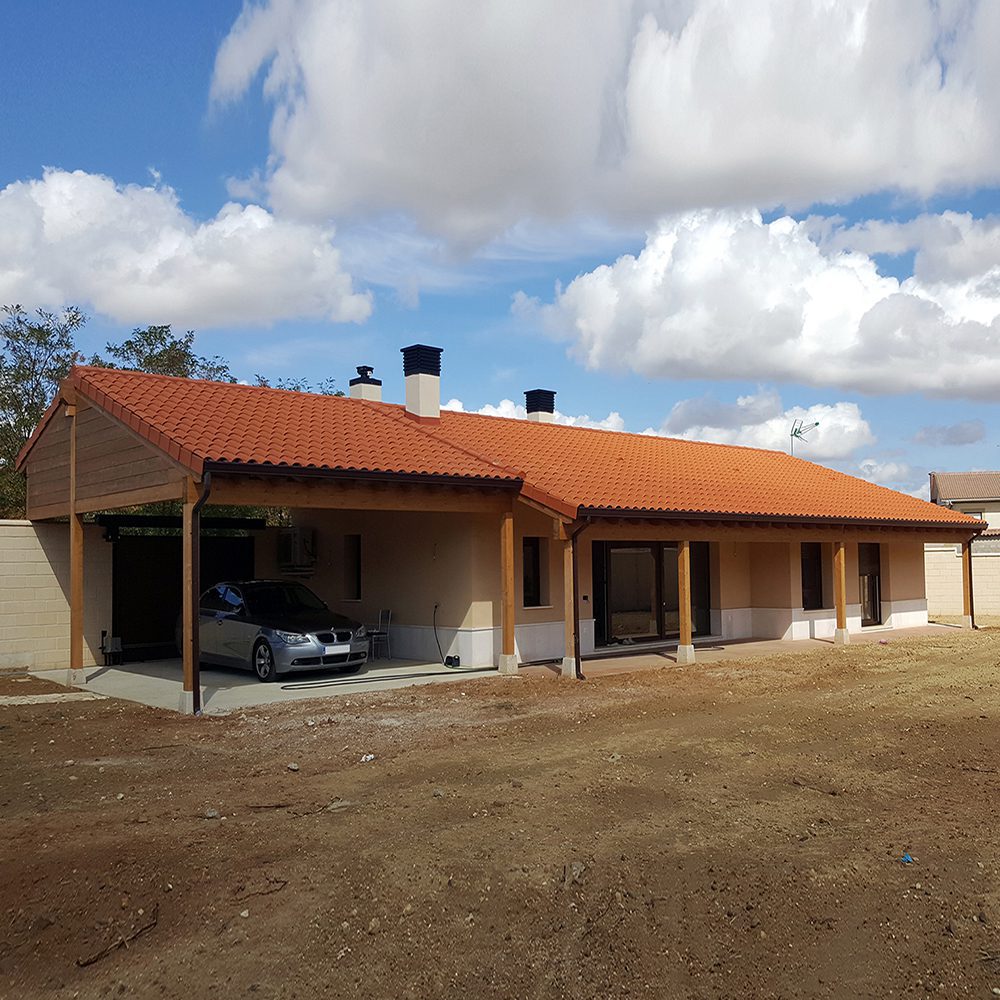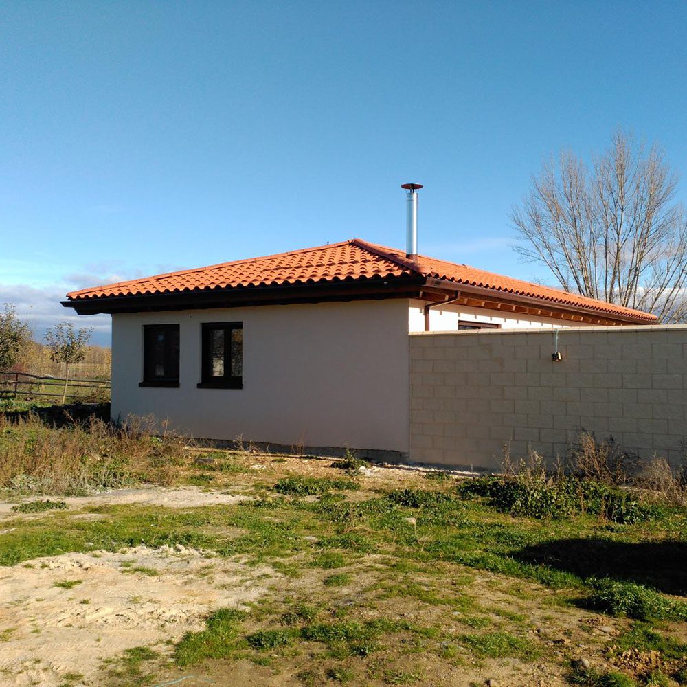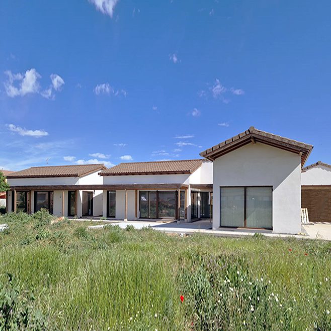 Vivienda unifamiliar aislada de estética rústica cuya distribución consta de un amplio salón/comedor, cocina completa, distribuidor, tres dormitorios dobles, baño y aseo. Además dispone de un […]Casa Passivhaus «Villada 1». Villada (Palencia)